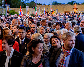 Beyond the Manor gates, past the entrances and down the long sweeping drive to the pavilion and the Great Hall, to a stage erected under cover of a massive marquee, members of the International Association of Scientologists from more than 65 nations filled the air with diverse language as they walked into the arena with a purpose—to celebrate their humanity and that of all mankind.
