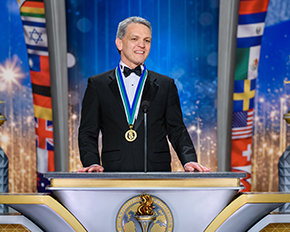 Many more tales unfolded, led by the stars of this bright and dynamic night. Namely, three IAS Freedom Medal Winners, who each epitomize relentless progress toward the goals of the religion everywhere for a peaceful, productive and crime-free world, where social justice prevails. As Mr. Miscavige introduced them one by one, a common ethic of work, courage, persistence and dedication were evident in their stories: