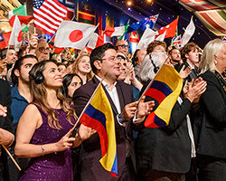 As Mr. Miscavige next told the exuberant multinational crowd, many of them waving the tricolored flag of France, “If ever there was an example of flourishing and prospering in the face of suppression, this is it. Moreover, it emphasizes the fact that, to one degree or another, every IAS Anniversary is a victory celebration.”