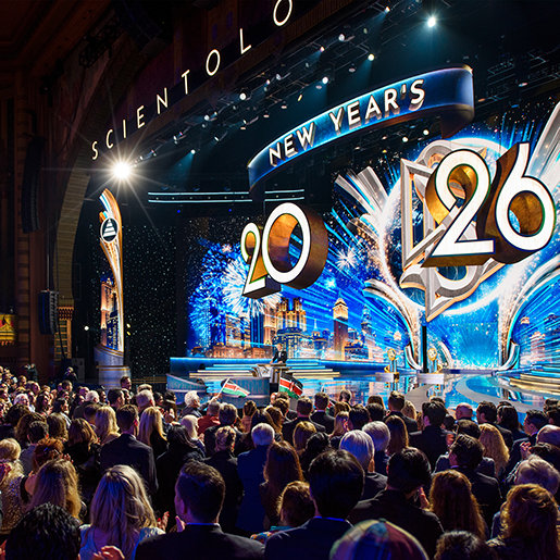 “For most of the world, New Year’s is something they wait for. They count down seconds, watching the clock, as if time is the one telling them when life beginsagain. But we’ve never lived time that way. So while the rest of the planet may still be winding down its clocks—we’re here for something else entirely: to see what happens when a full year of Scientology accomplishments is unleashed all at once.” —Mr. David Miscavige, ecclesiastical leader of the Scientology religion
